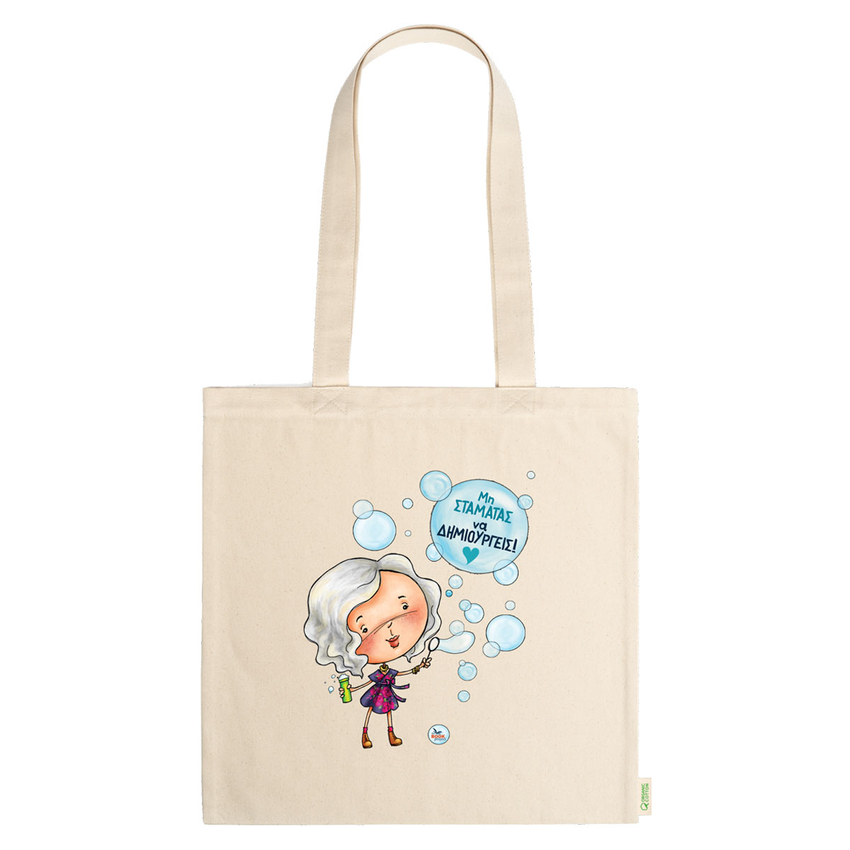 Μη σταματάς να δημιουργείς! – πάνινη τσάντα σε φυσικό χρώμα (C15)