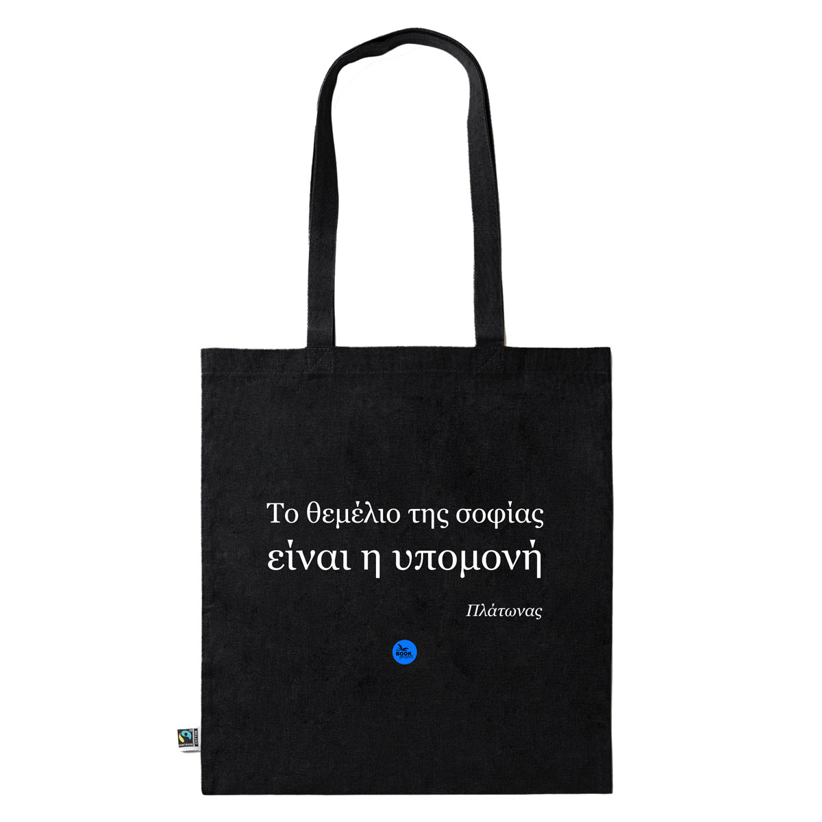 Το θεμέλιο της σοφίας είναι η υπομονή – πάνινη τσάντα σε μαύρο χρώμα (B04)